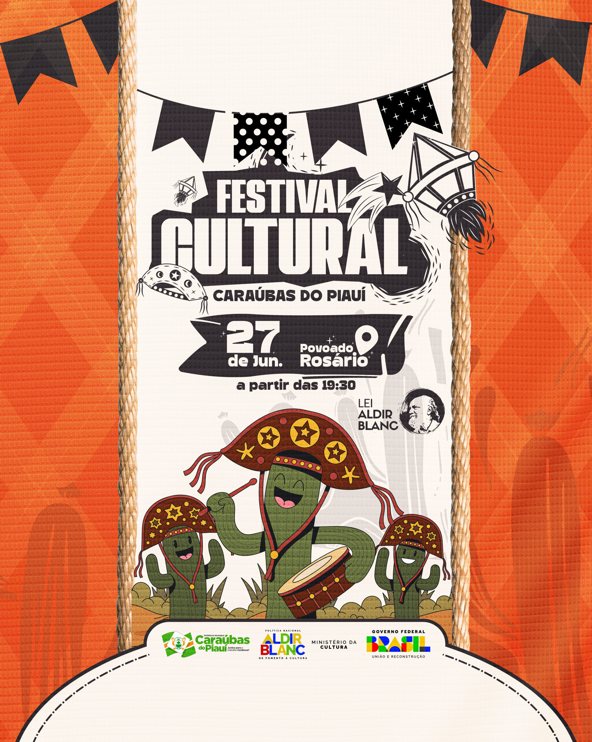 Venha participar do Festival Cultural de Caraúbas do Piauí! Será nesta sexta-feira, dia 27 de junho, na comunidade Rosário. Um evento repleto de cultura, música, dança e alegria, promovido pelo prefeitura de Caraúbas do Piauí, desenvolvendo ações da lei Aldir Blanc. Não perca essa oportunidade de celebrar nossa cultura e fortalecer nossos laços comunitários!