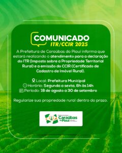 A Prefeitura de Caraúbas do Piauí informa aos proprietários rurais que já está disponível o atendimento para a declaração do