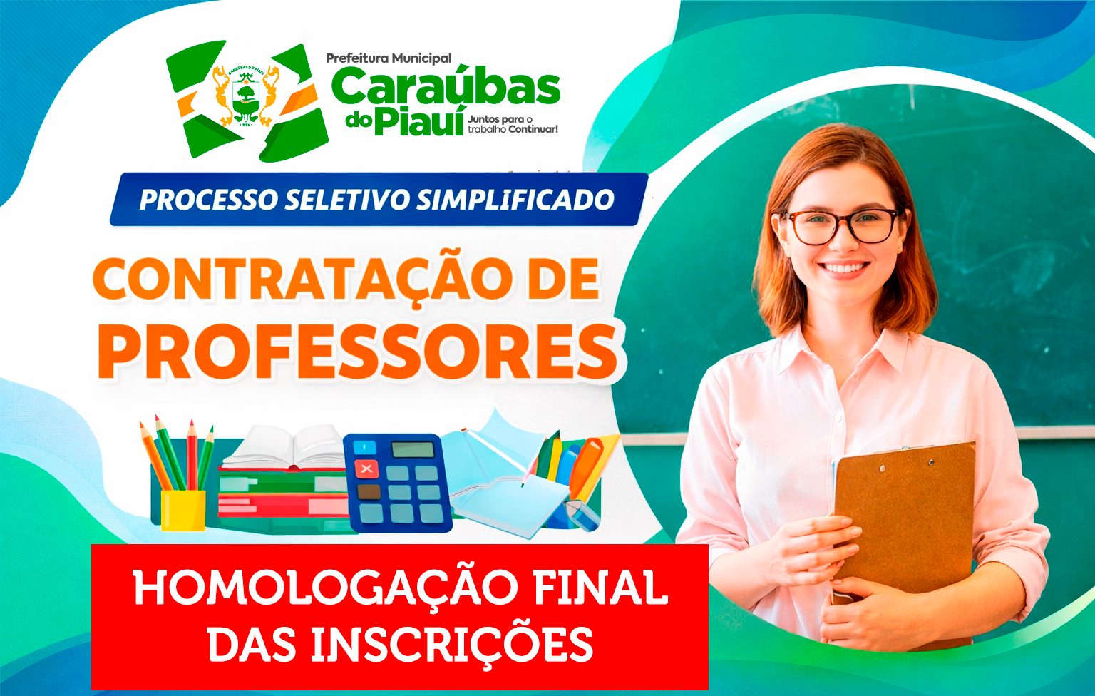 A Prefeitura Municipal de Caraúbas do Piauí publicou a homologação final das inscrições do Processo Seletivo Simplificado – Edital nº 03/2026, destinado à admissão temporária de profissionais para atuação na Rede Municipal de Ensino, por meio da Secretaria Municipal de Educação de Caraúbas do Piauí.